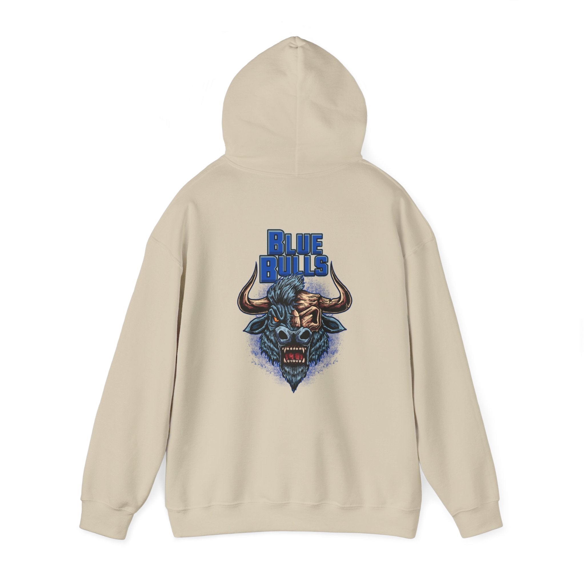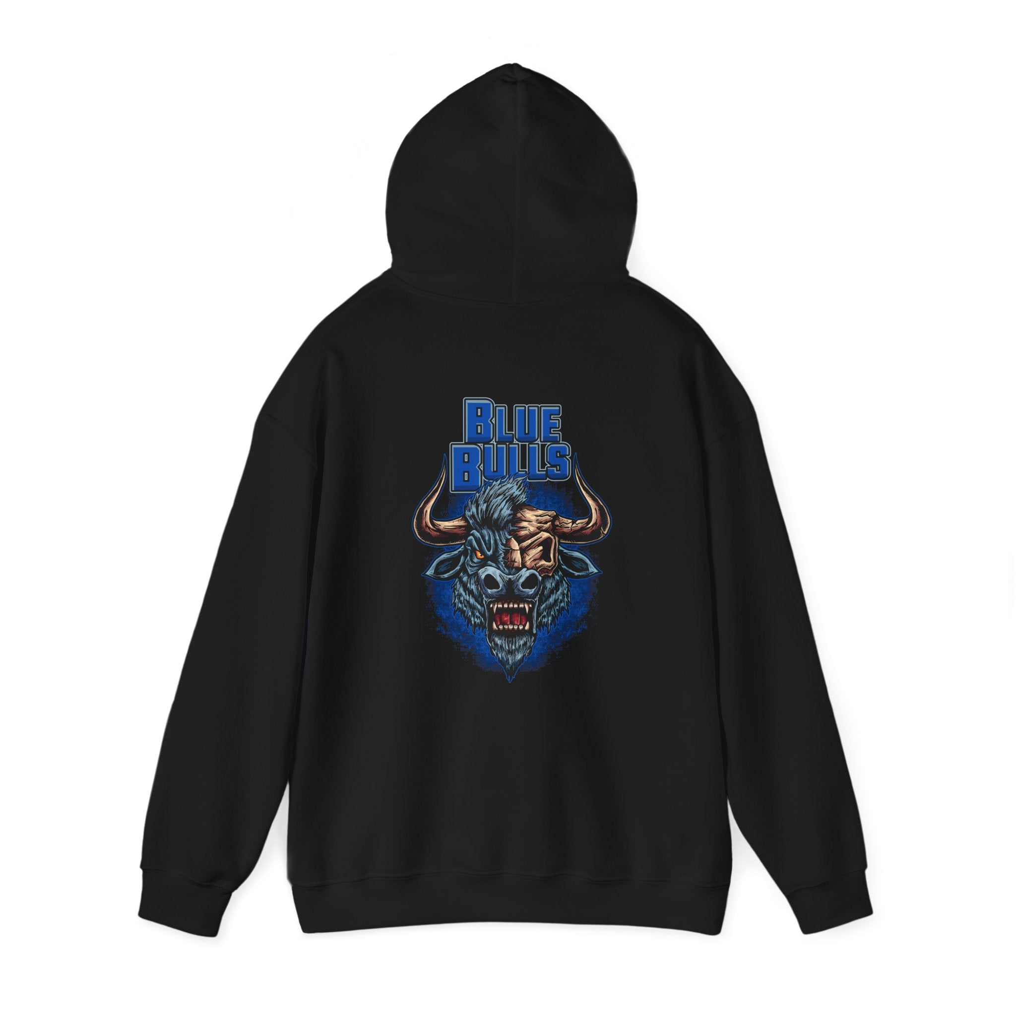 This Crazy bull skull design hoodie is perfect for hockey and goalie fans. The blue bulls graphic adds a unique and edgy vibe to your wardrobe. It offers a cozy and warm feel, making it ideal for casual wear or layering during colder seasons. This hoodie is relevant for hockey season, sports fans, and anyone who loves bold and eye-catching designs.