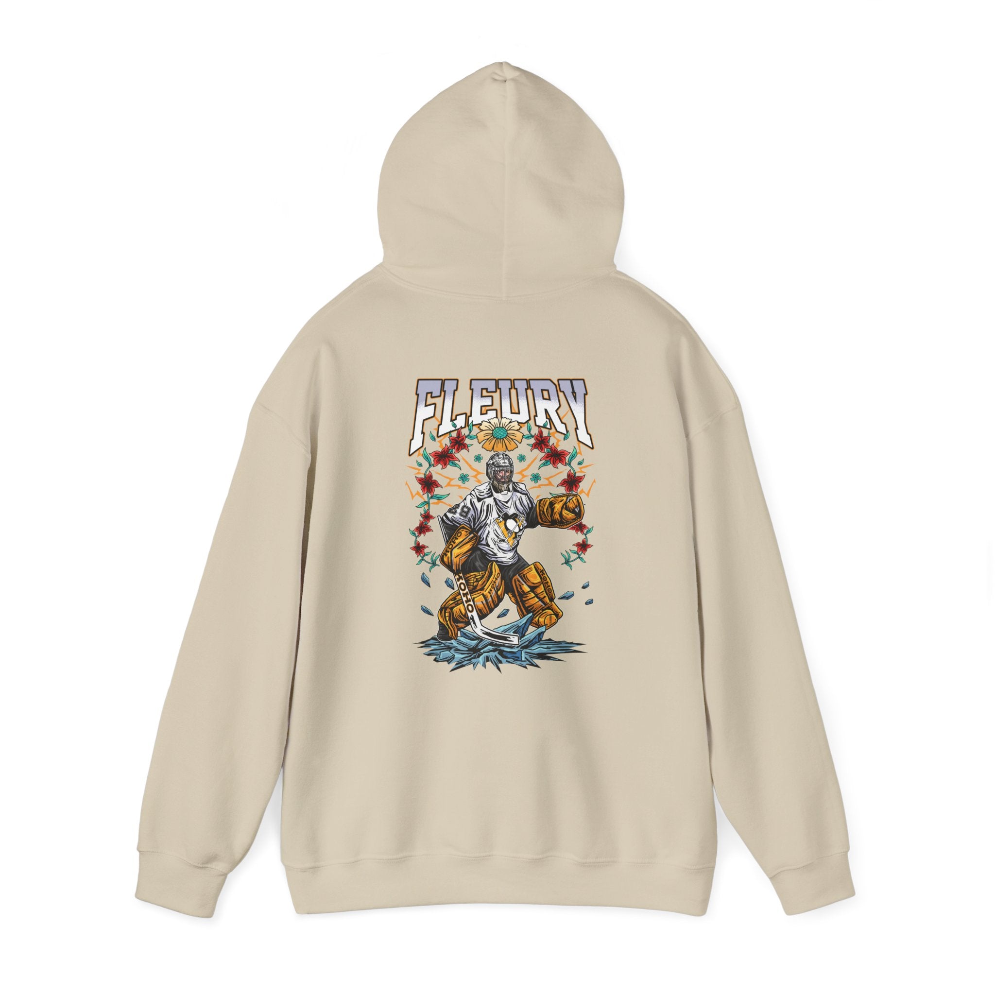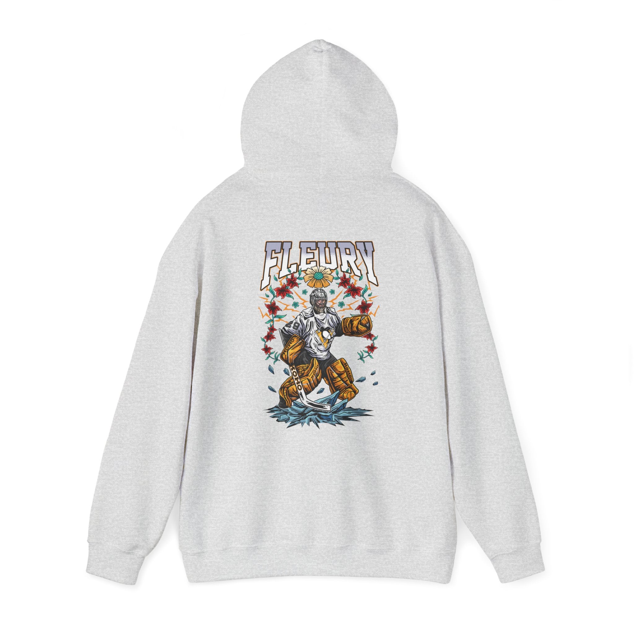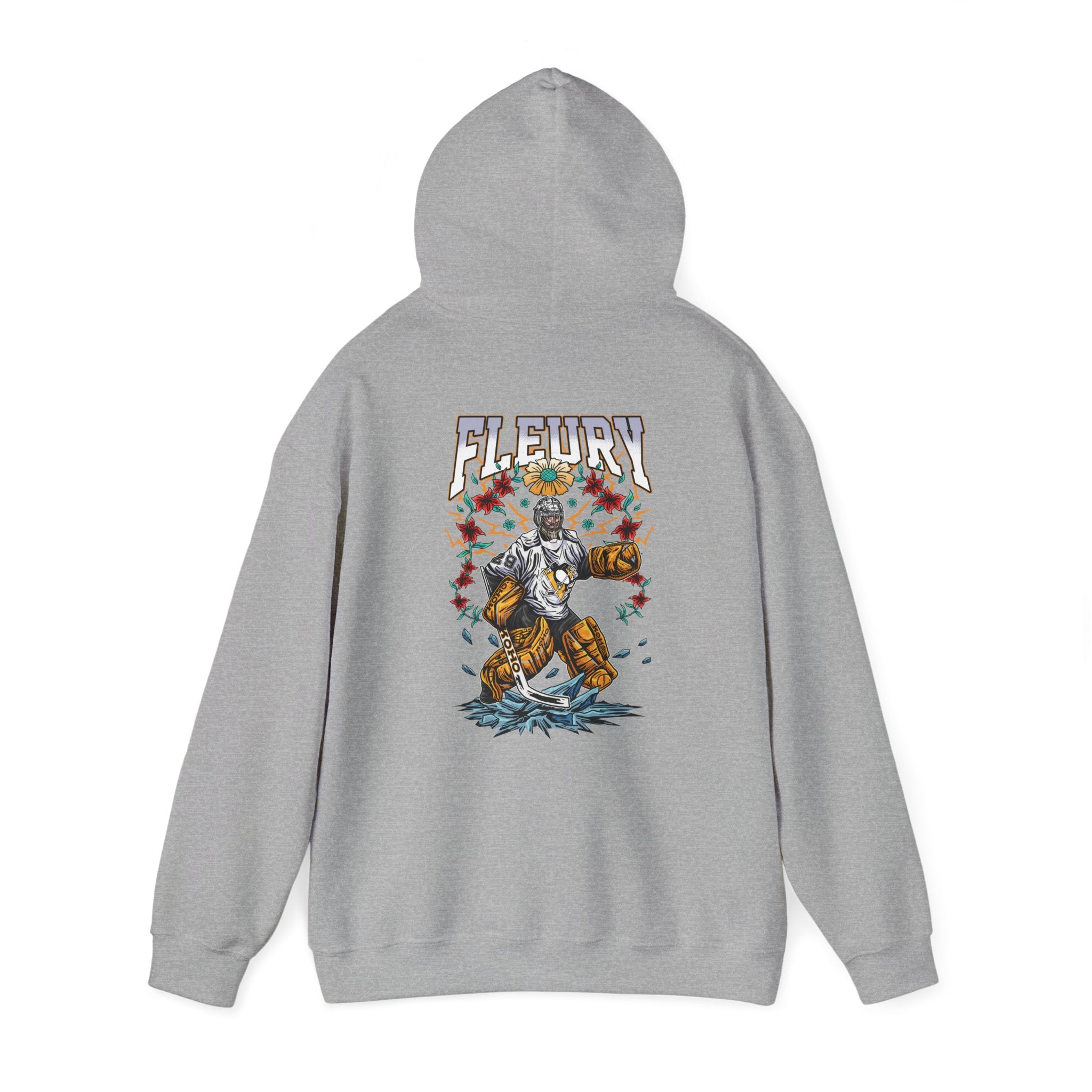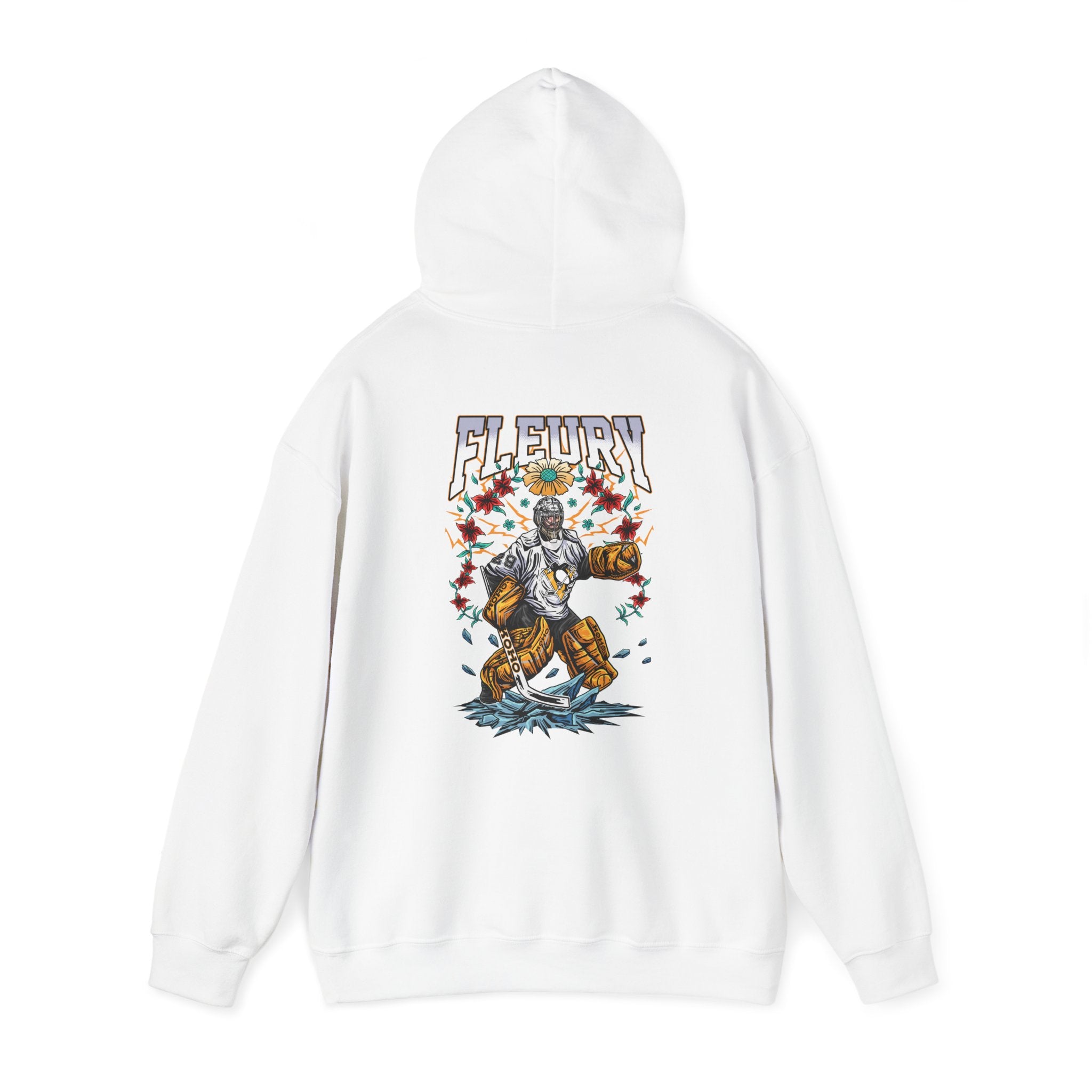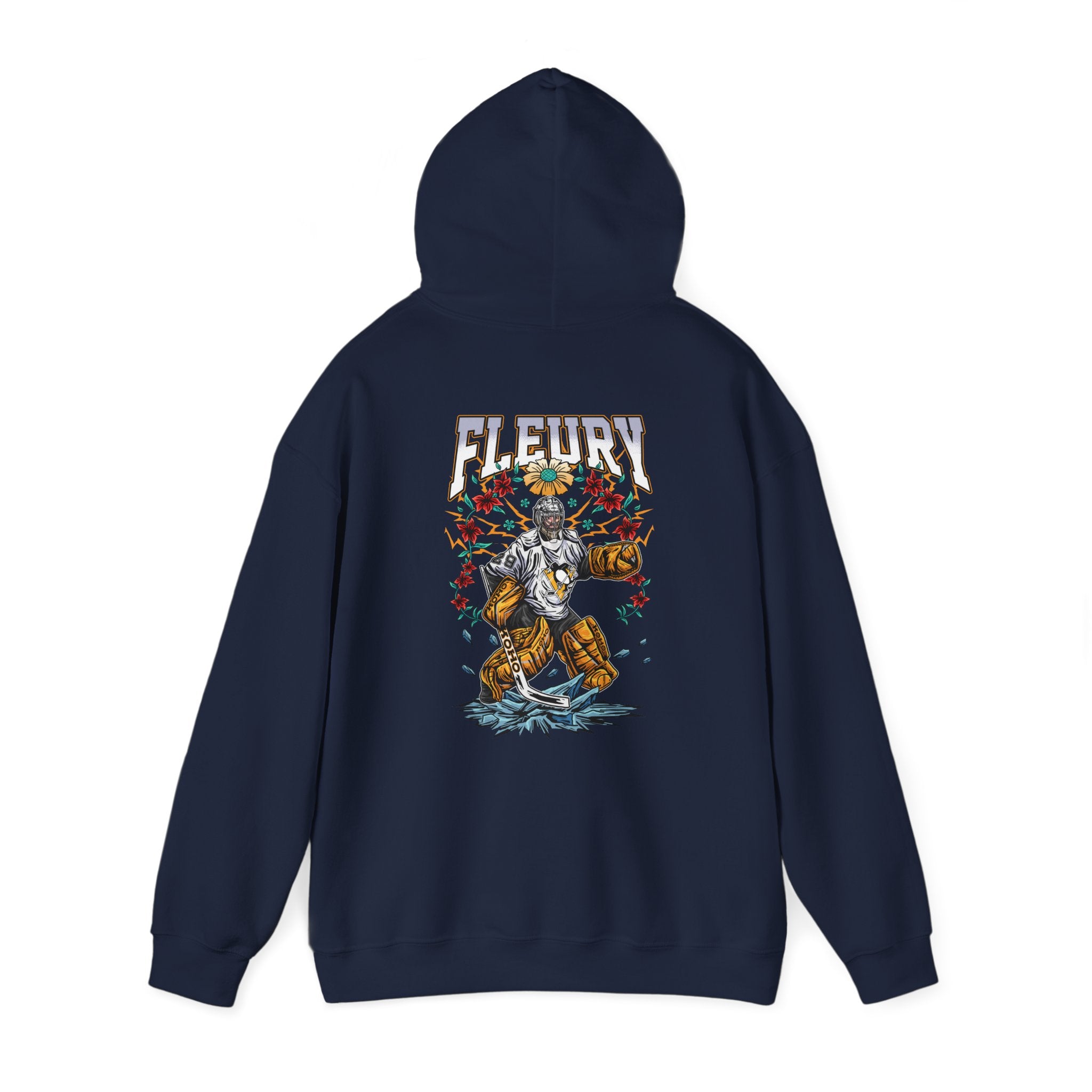 This bold and colorful Fleury flower goalie hoodie is perfect for hockey enthusiasts. The design gives off a vibrant and energetic vibe, making it a great addition to anyone's wardrobe. Ideal for hockey fans, sports lovers, and those who appreciate unique and eye-catching apparel. Perfect for gifting during hockey games, birthdays, or holidays.